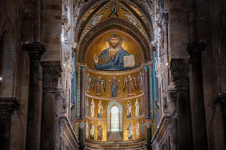 Al centro della Cattedrale, il Cristo Pantocratore domina lo spazio con il suo sguardo✨ #visitcefalu